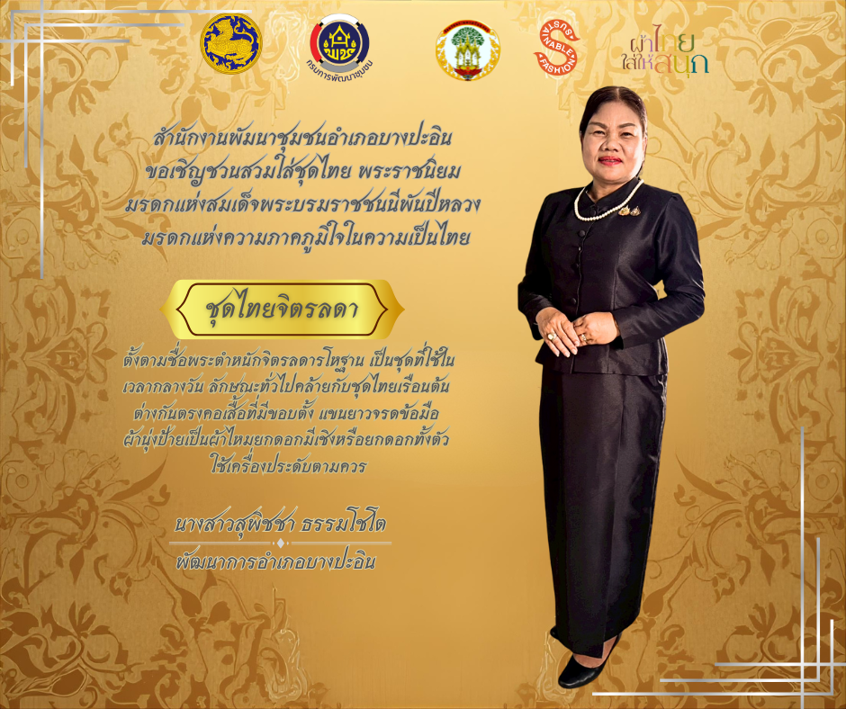 สำนักงานพัฒนาชุมชนอำเภอบางปะอิน ขอเชิญชวนสวมใส่ชุดไทยพระราชนิยม 8 แบบ
